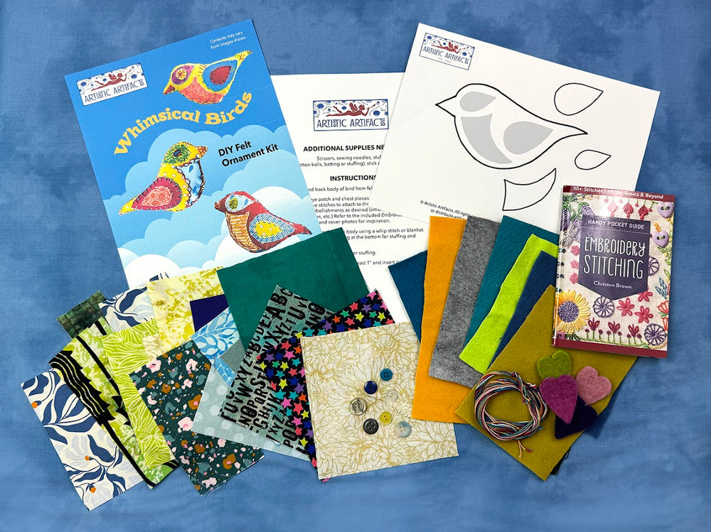 Please check the product descriptions: needles and threads may need to be purchased separately. Rebecca Ringquist, the owner/designer of Dropcloth Samplers, loves to use Eleganza 8wt Perlé cotton thread from Wonderfil Specialty Threads, especially the variegated colors.