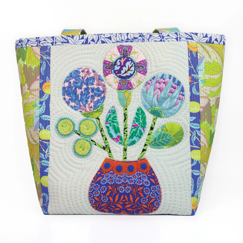 Brace yourself for the debut of the fabulous NEW Morris Tote! This roomy, structured stunner is your new sidekick, whether you're off to the farmers market or gearing up for a sewing spree. It's as light as a feather and as spacious as your imagination. Adorned with a charming cotton appliquéd flower pot and sprinkled with creative stitching magic, it's a bag that's as unique as you!