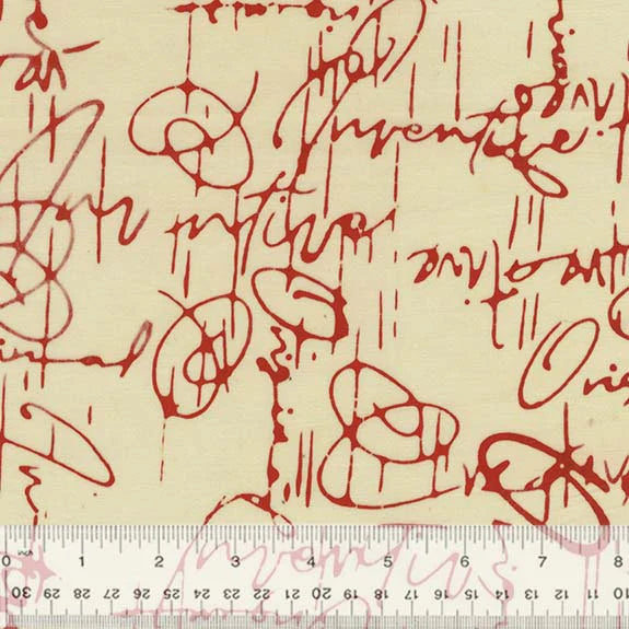 Abstract red script on cream fabric, 899Q-9-1-015.