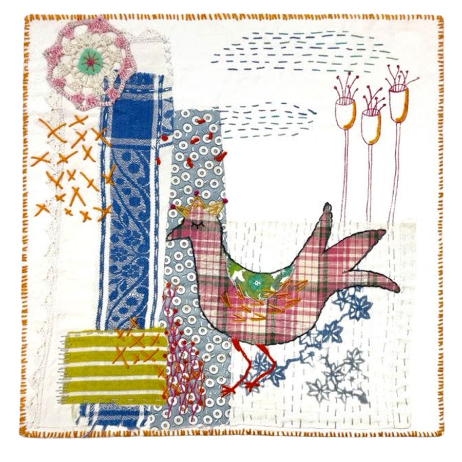 Create a playful mixed media bird collage using a combination of vintage and contemporary design! In this popular class (first created by Judy and Liz Kettle of Textile Evolution for our inaugural Creative Minds Summit) you will learn fabric collage, discover tons of hand and machine stitch ideas and try out screen printing and block printing. Using vintage quilt blocks, linens and fabrics, you will create the first layer of your collage. It will then be enhanced using Thermofax screens and hand carved wooden printing blocks using Artistic Artifacts Textile Paints, while both machine decorative stitches and hand stitches depth and interest. Your class kit — a $25 fee paid directly to the instructor the morning of class includes: a vintage quilt block base, vintage and contemporary fabrics, embellishments and trim, plus paint, Thermofax screens, wooden printing blocks and WonderFil Specialty Threads for your use during class. ♦ Student Supply List (please bring the following with you to class) ● small scissors ● rotary cutter ● small cutting mat and ruler ● your own favorite hand-stitching needles and embroidery floss/threads.