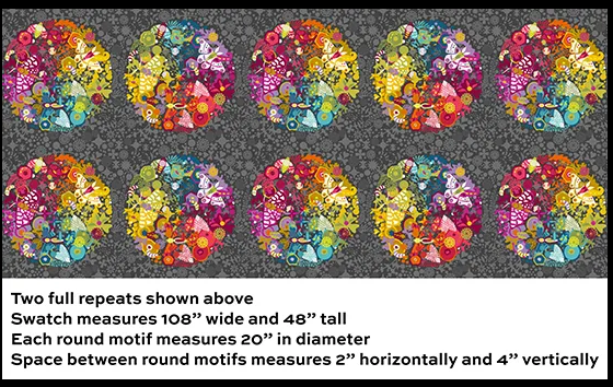 WIDEBACK - Color Wheel is a celebration of full-spectrum rainbow goodness. With timeless favorites and brand-new prints, it’s perfect for a wide range of color-filled projects! Each round motif is 20" in diameter.