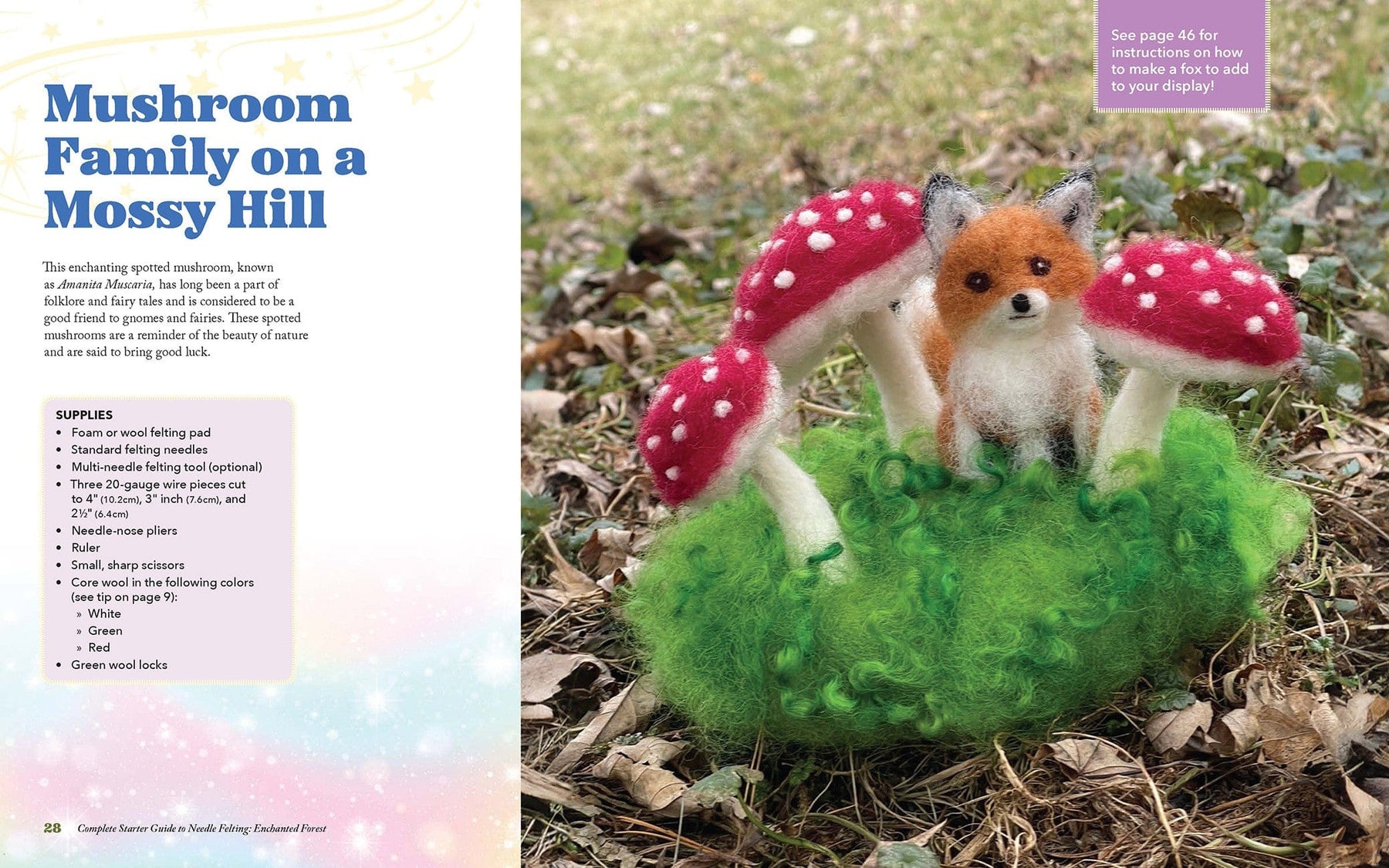 [Softcover, 128 pages] Needle felting is a process that uses barbed needles to mash wool fibers together forming a denser material into an endless range of shapes and forms, a great way to make adorable fully dimensional soft sculptures. The Complete Starter Guide to Needle Felting: Enchanted Forest features several favorite beginner needle crafting projects including birds, fairies, unicorns, and many other woodland friends. Learn what needles to use, how to dye custom colors, how to blend colors and shapes, and the materials needed to begin the fulfilling art of needle felting.