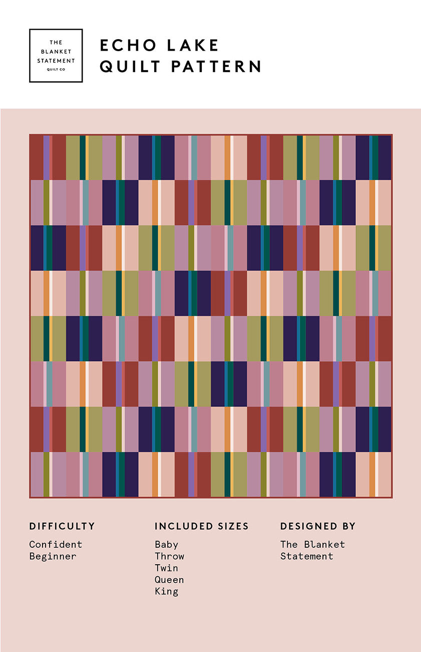 This modern, original quilt pattern is perfect for confident beginners! This unique, rectangular, block-based pattern features super-speedy strip piecing! The pattern includes instructions for the following sizes: Baby - 37” x 48” Throw - 56” x 72” Twin - 74” x 96” Queen - 93” x 96” King - 111” x 108”