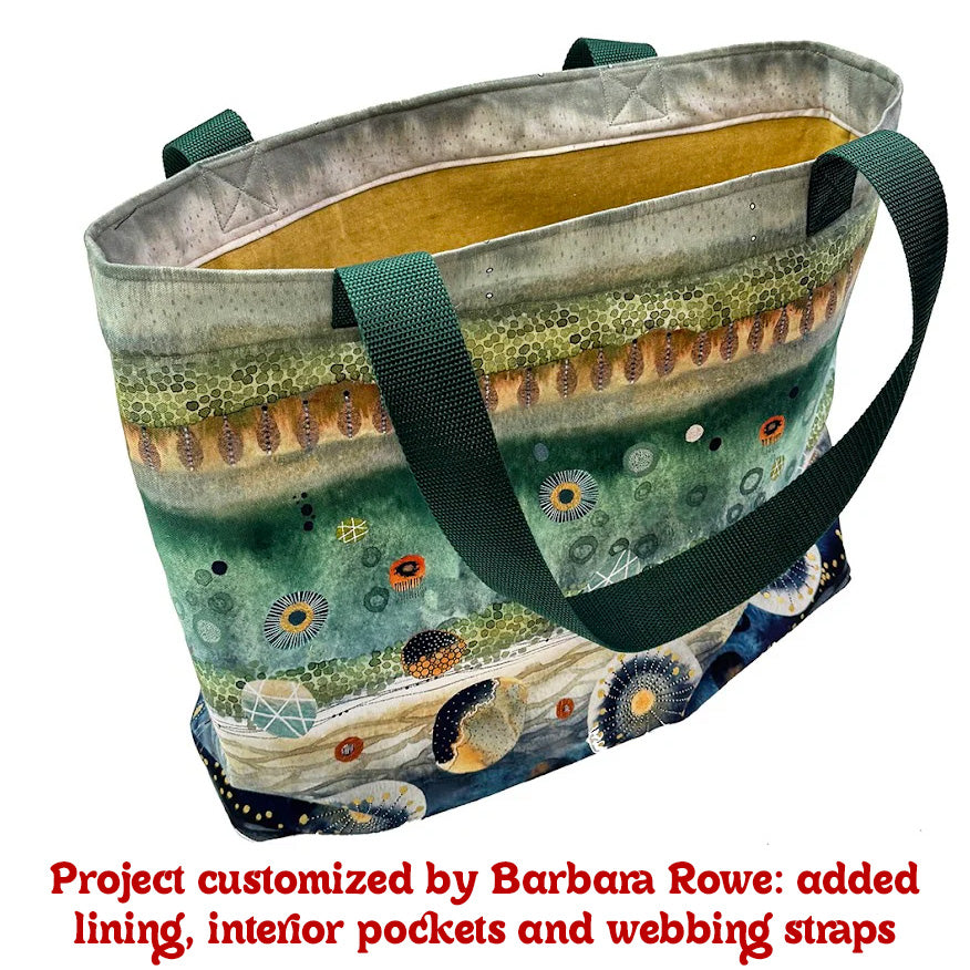 PRE-ORDER! 36 in. cotton canvas panel to create a tote bag that measures 16 in. wide X 15.5 in. high x 4.5 in. deep in the beautiful Flora & Form prints! Flora & Form by Kate Rebecca Leach of Essoldo Design explores the balance of nature and abstraction. Soft botanicals blend with bold shapes in a rich palette of burnt orange, sage, charcoal, deep blue, and refined neutrals, accented with her signature metallic gold details. Canvas Tote Bag Fabric Panels are a fun new trend, and easy to stitch together — note that this product is NOT a finished bag.
