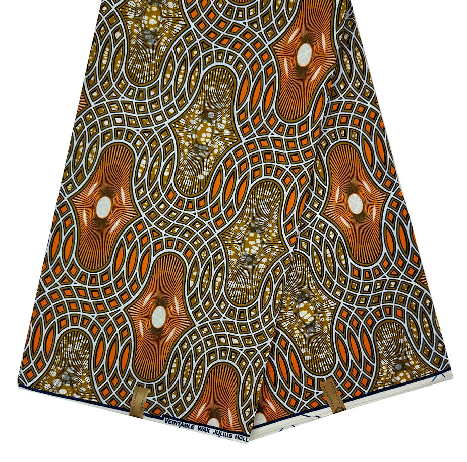 Manufactured by Julius Holland fabrics from The Netherlands. This fabric is an excellent quality cotton, 47 inches wide, printed using dyes that will hold up to many washings. Used for stylish clothing in Africa, this fabric is also wonderful for machine quilting and crafts. Dutch wax print fabrics were the first printed cottons to arrive in African communities and they are still loved today.