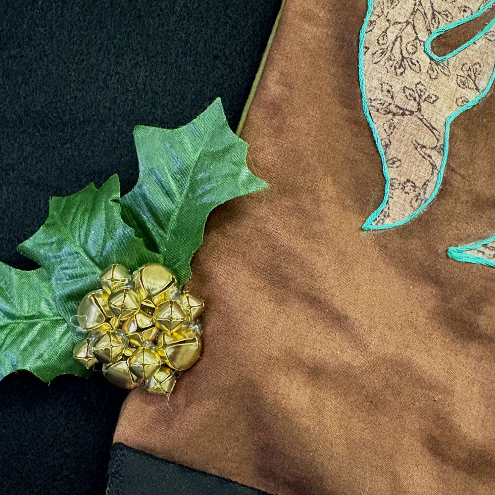 Katelyn Grandy used Marcia Derse Palette and stash fabric with Steam-A-Seam 2 for her cute cowboy boot, embellished with DMC Six-Strand Embroidery Floss and bells for a spur. If you’re the lucky randomly drawn winner, this stocking will arrive stuffed with Creative Finds for you!