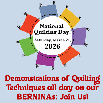 Join us for National Quilting Day on Saturday, March 21, 2026 from 10:00 am–4:00 am —we’ll have a full day of quilting inspiration & demonstrations! We’ll be showcasing the power and precision of our BERNINA machines throughout the day with ongoing demonstration: