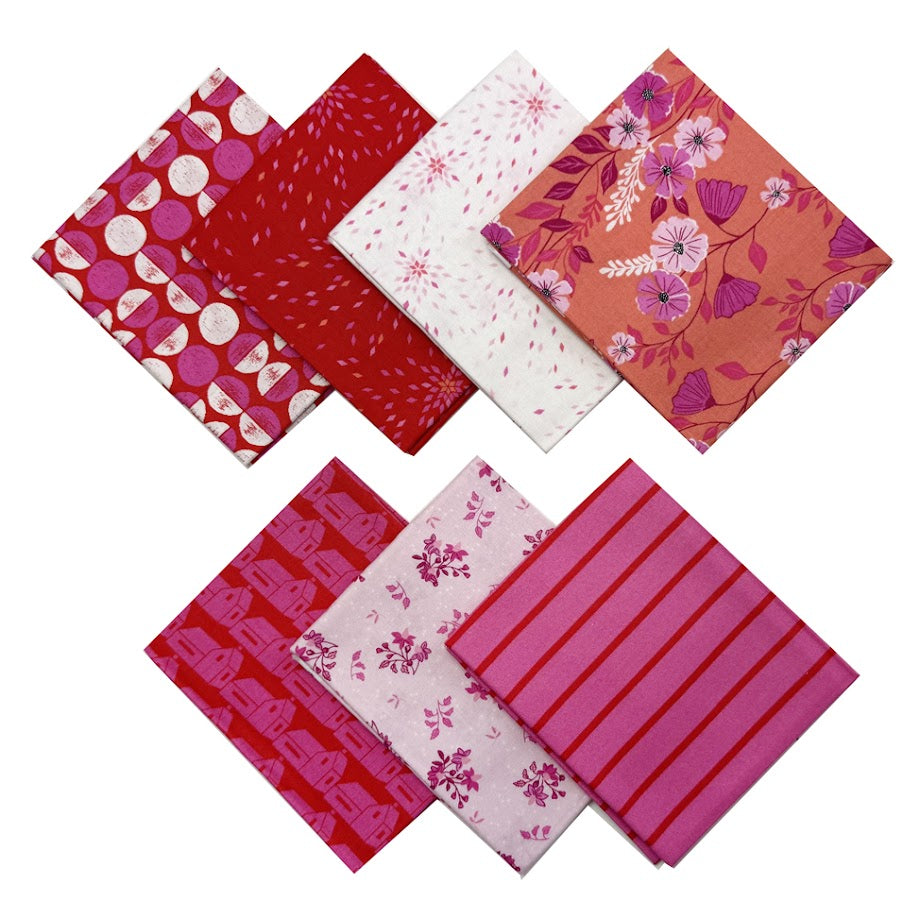 Curated bundle of 7 fabrics from Memories Unfold by Stephanie Organes. Each piece of her fabric collections reflects her sensibility and love for color, whimsical and, inspired by her culture and love of nature.