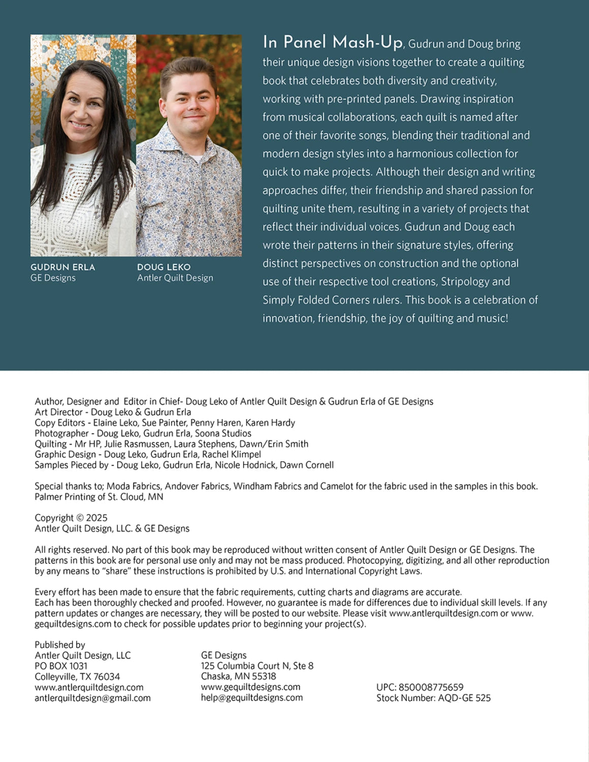 [Softcover, 96 pages] Panel Mash-Up is a brand-new book packed with creative ways to turn fabric panels into dynamic quilts. Co-authored by quilting besties; Gudrun Erla of GE Designs and Doug Leko of Antler Quilt Design, this book features quilt patterns that are fresh, fun, and easy to personalize.