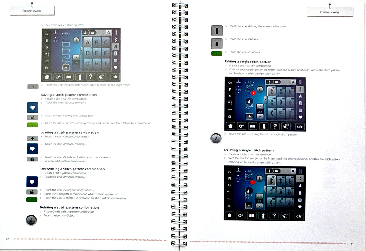 Previously Loved Original Bernina 770QE Manual. Spiral bound manual comes in original box and includes an embroidery DVD and icon key cards. Like new condition.