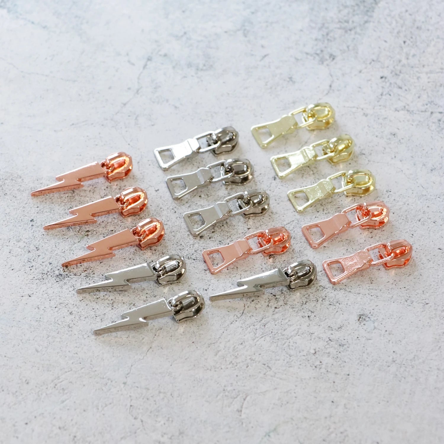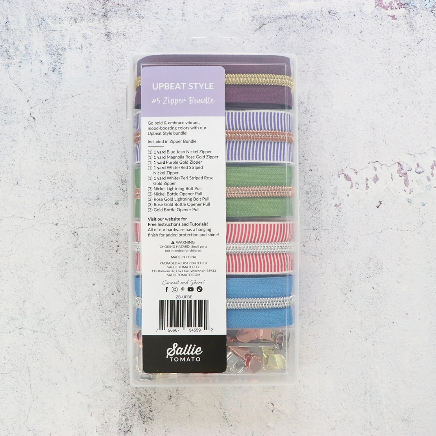 Can't decide on which zippers and pulls to choose? Sally Tomato has created community top-picks and dreamy zipper bundles to complete your collection! You’ll receive one yard each of five different zipper tapes, size #5 Zippers. Your pack also includes 15 total zipper pulls. Sally Tomato’s premium Zippers by the Yard boast sturdy nylon teeth that ensure a professional finish without the worry of breaking needles, providing a reliable and resilient solution for your sewing projects.