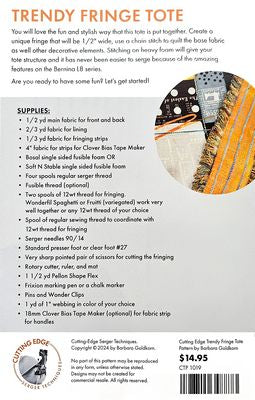 Go beyond rolled hems and finishing edges and create serged projects and decorative effects you never thought possible with this step-by step pattern by Barbara Goldkorn Cutting-Edge Serger Techniques.