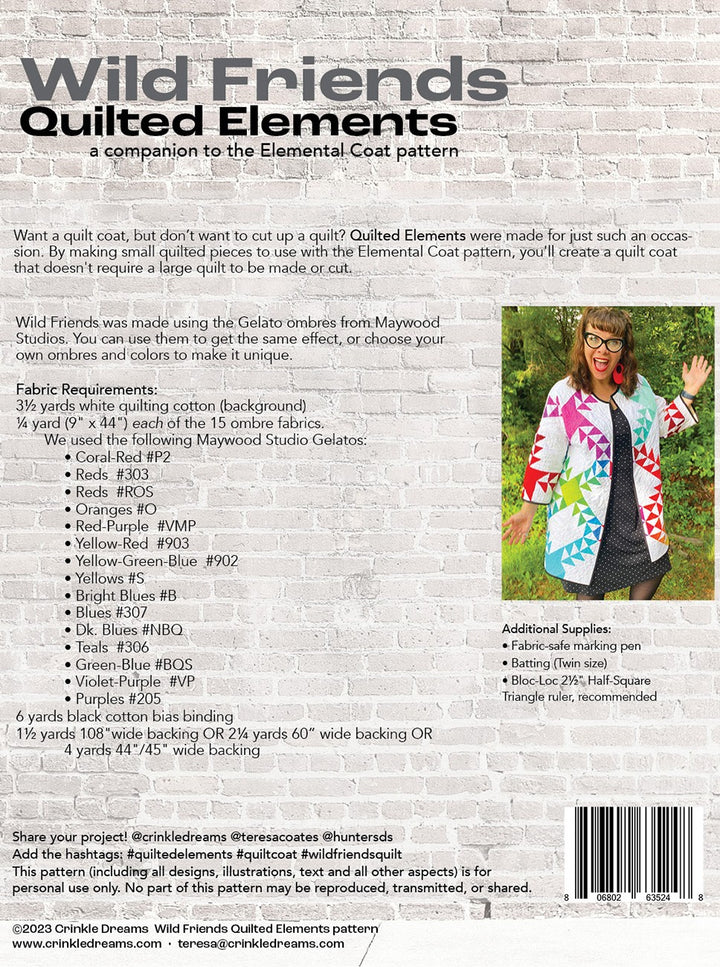 Wild Friends Quilted Elements give quilters the chance to create small quilted sections that can be used with the Elemental Coat pattern to create a quilt coat without cutting up a quilt.